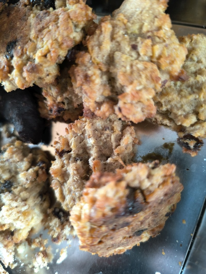 - Mit einem Esslöffel Häufchen auf das Blech setzen, jeweils etwas Abstand lassen. Die Häufchen leicht mit einer Gabel flach drücken (ca. 1 cm dick).